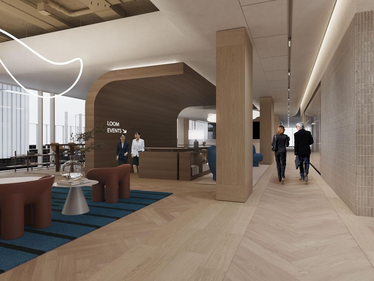 En la planta baja, LOOM AZCA cuenta con un impresionante espacio para eventos de gran formato dotado con tecnología audiovisual de última generación, permitiendo realizar cualquier tipología de evento corporativo, al tiempo que se crea una experiencia diferencial.