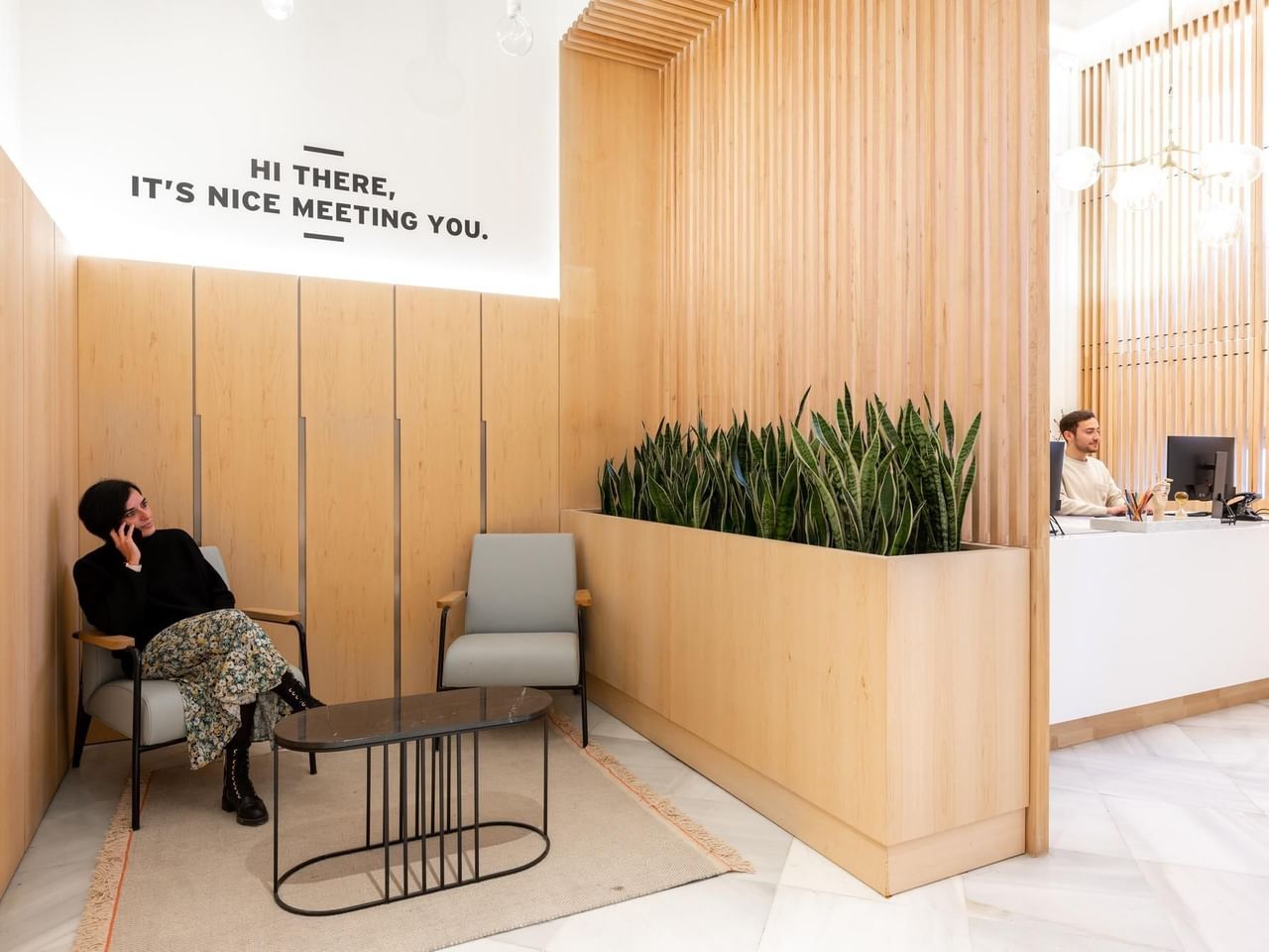Reciba una bienvenida agradable y profesional en la recepción de esta arbolada avenida y conéctese a la energía de nuestra dinámica comunidad empresarial. Y cuando haya terminado de trabajar, acérquese a la terraza de la azotea para tomar algo con unas impresionantes vistas al Palacio de Cibeles de fondo.