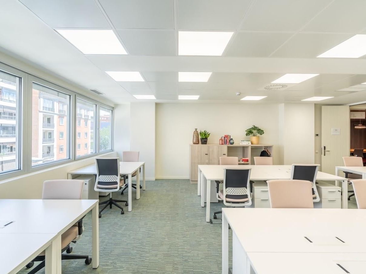Además de tener acceso a WIFI, la posibilidad de reservar salas de reuniones y el acceso a zonas comunes, Utopicus José Abascal tiene u ofrece: