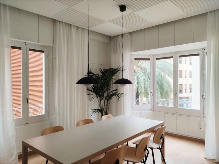 workin.space trabaja contigo con un experto local para alquilar una oficina equipada en Valencia en 2025: mobiliario, Wi-Fi, impresoras, recepción, salas de reuniones. Todos los espacios están listos para usar y disponibles sin comisiones de agencia.