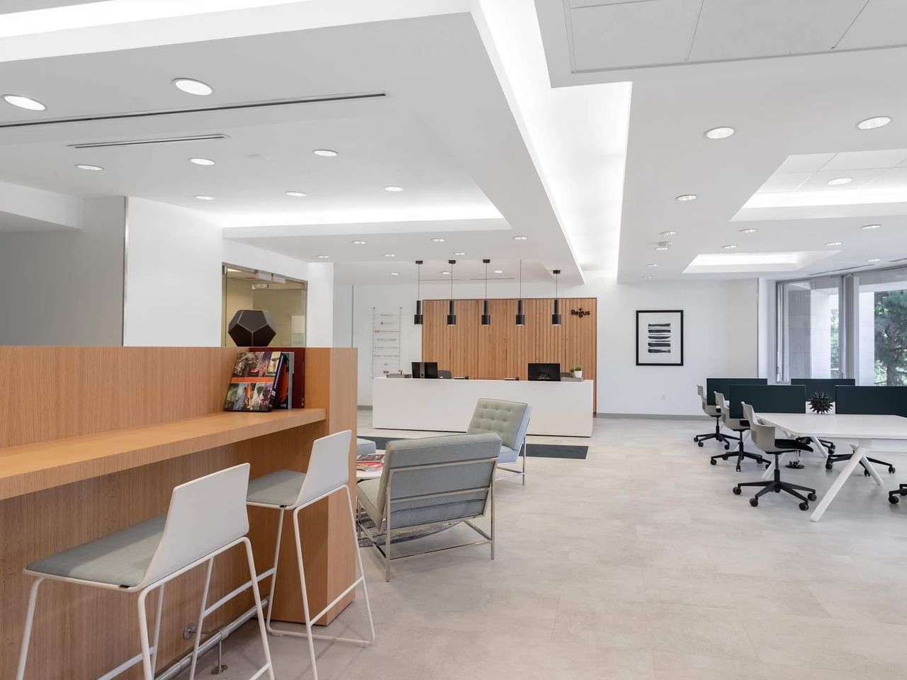 Puede que se encuentre en el interior del Pacífico, pero el impresionante edificio de tres plantas tiene vistas a un pintoresco estanque y a un patio donde podrá relajarse al aire libre y reflexionar sobre sus proyectos.
