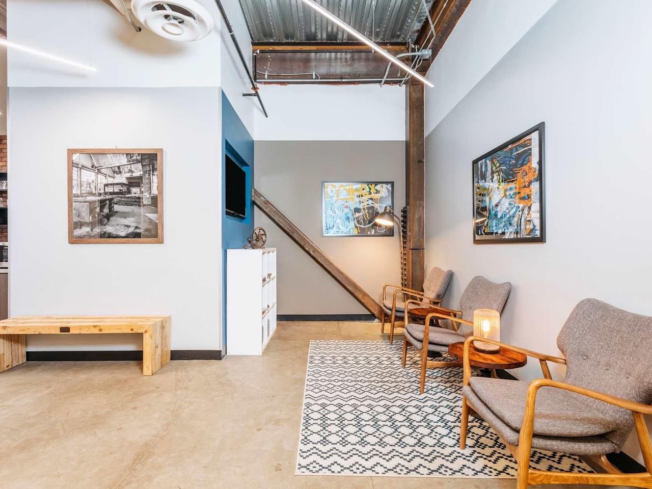 Las atractivas oficinas cuentan con una sala de negocios y ventanales que proporcionan abundante luz natural.