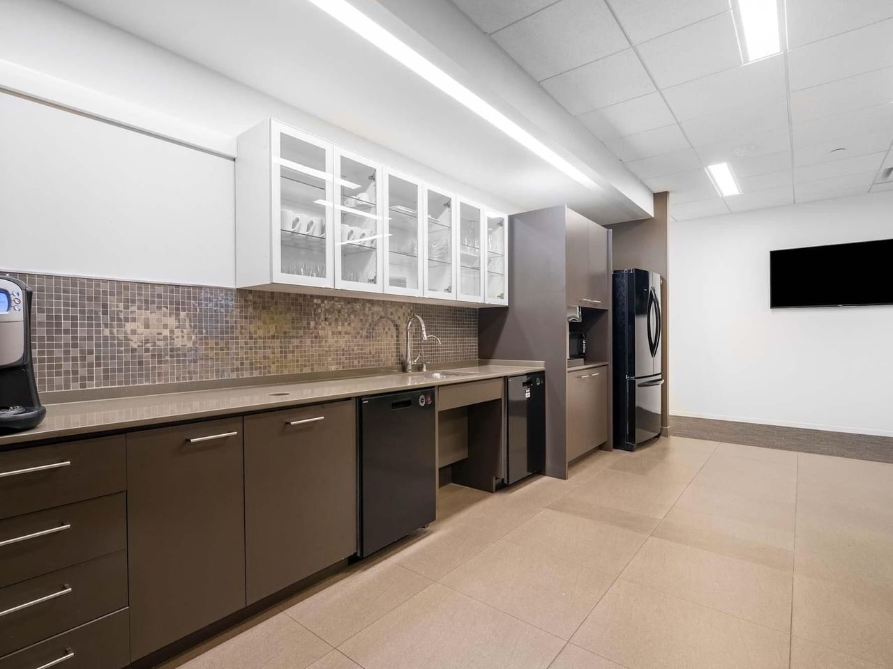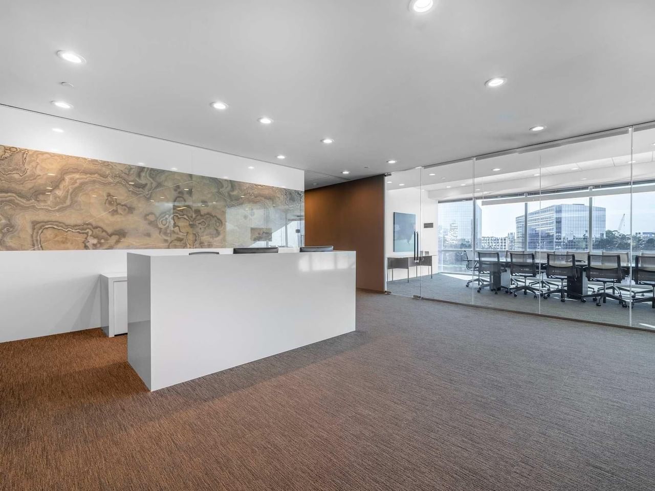 Siéntase inspirado trabajando en esta oficina luminosa y elegante, realzada por ventanales del suelo al techo que enmarcan el entorno natural y un estudio de videoconferencias, además de un bar de sándwiches/café.