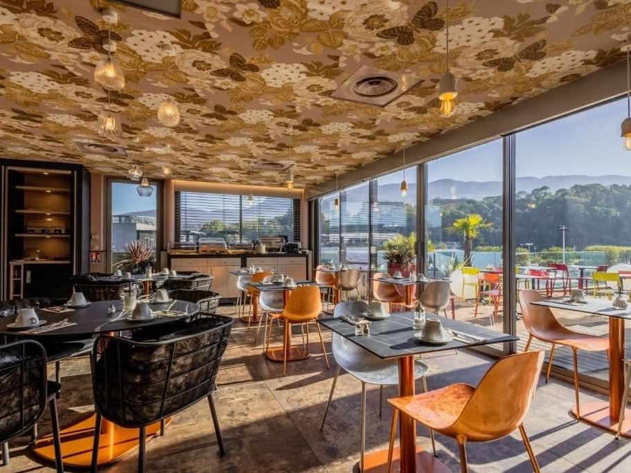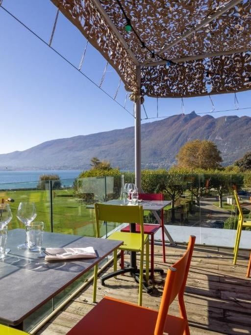 Durante su tiempo libre, el restaurante del hotel "Le Kubix" le ofrece una terraza panorámica con impresionantes vistas al lago para comer o cenar.