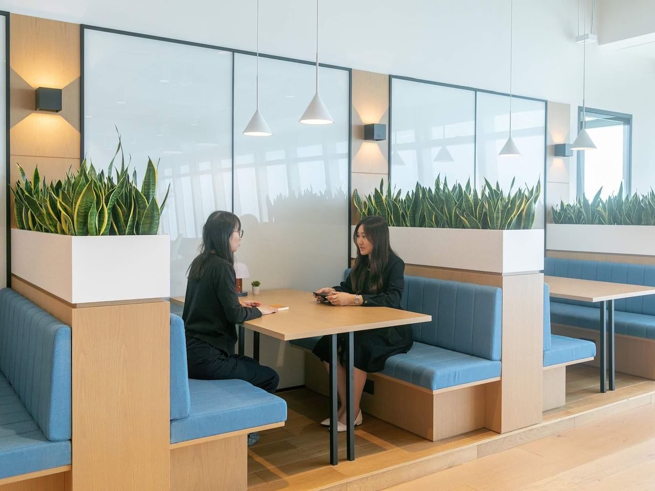 En unas oficinas luminosas con ventanales que van del suelo al techo, déjese inspirar por las impresionantes vistas sobre el agua y más allá.