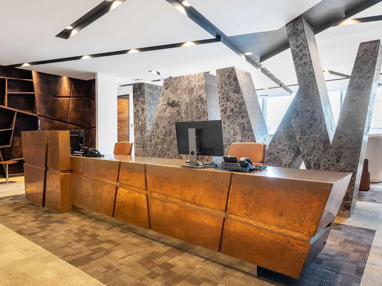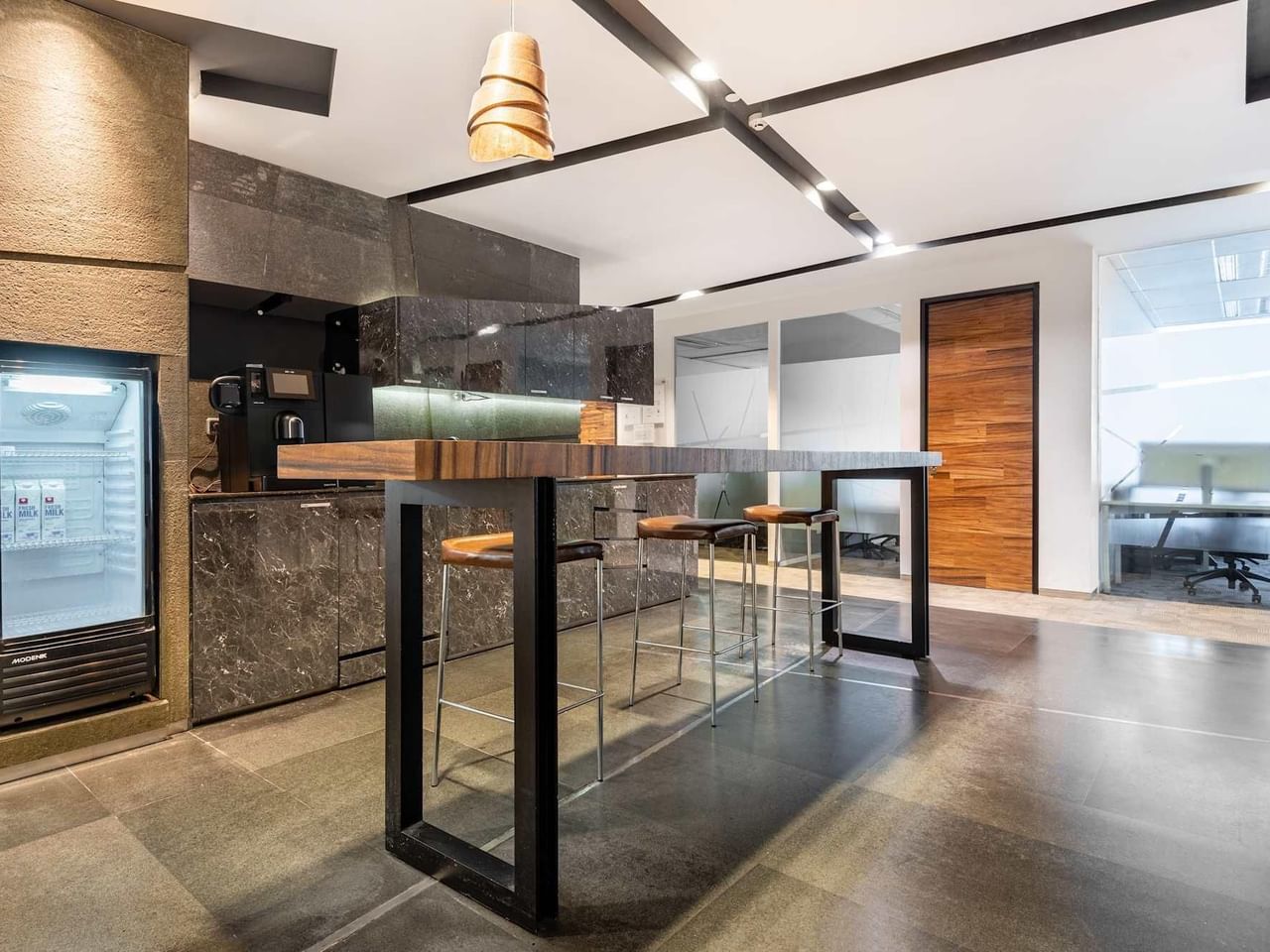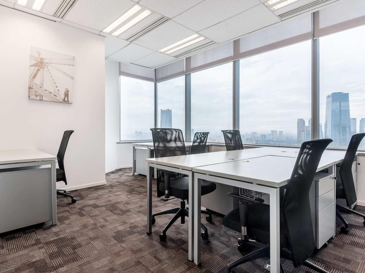 Trabaje con estilo en un espacio de trabajo moderno, con muebles de roble y mucha luz natural gracias a las ventanas que van del suelo al techo.
