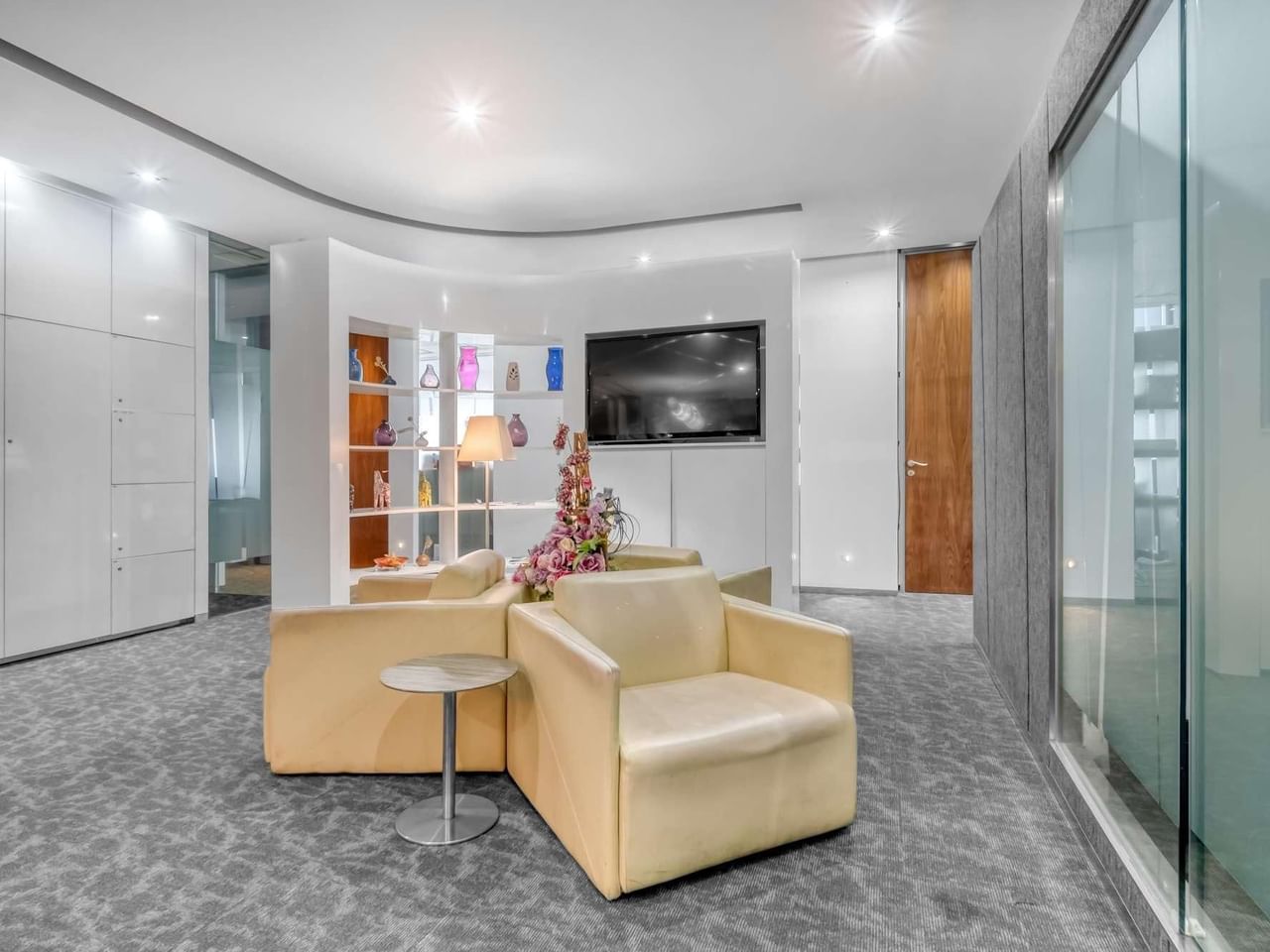 Impresione a sus invitados cuando le visiten en la Tempo Scan Tower, con su elegante fachada curvada, sus placas de suelo horizontales y sus aletas verticales, que se combinan para crear un fascinante efecto espiral.