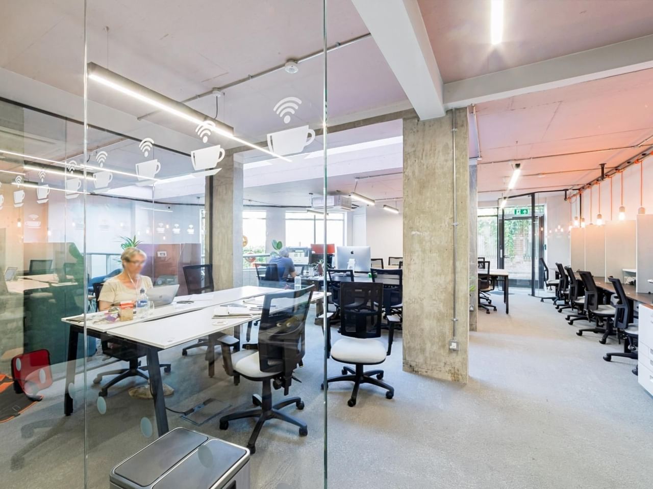 Concéntrese en espacios de coworking luminosos y confortables o en salas de reuniones privadas.