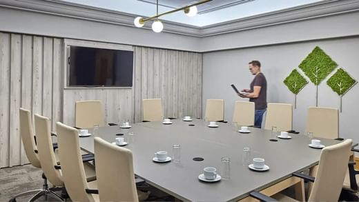 Trabaje desde nuestro vibrante espacio de trabajo, atienda las llamadas de sus clientes en nuestras cabinas insonorizadas, celebre conferencias en nuestras cabinas o talleres de mapas mentales en nuestra sala de juntas: disponemos de salas de reuniones que le harán vibrar de creatividad.