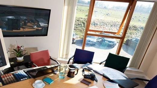 Este luminoso interior de diseño integral ofrece mucha luz natural y crea el entorno perfecto para centrarse y seguir siendo productivo.