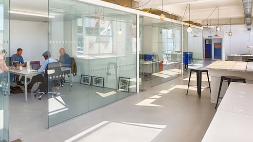 Con una entrada acristalada y bien iluminada, este edificio contemporáneo es un lugar cómodo para trabajar.