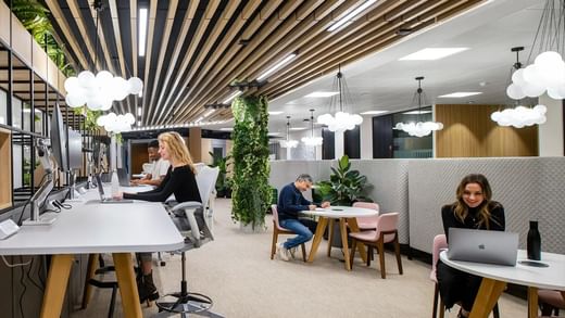 El amplio espacio de coworking de planta abierta facilita la creación de redes con otros profesionales, mientras que las elegantes suites y salas de reuniones le ofrecen la posibilidad de concentrarse o colaborar en privado.