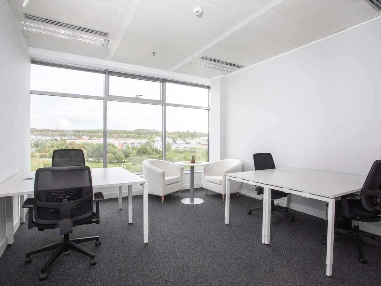 Trabaje de forma productiva en un espacio de trabajo cómodo y luminoso con vistas al paisaje circundante desde la 4ª planta.