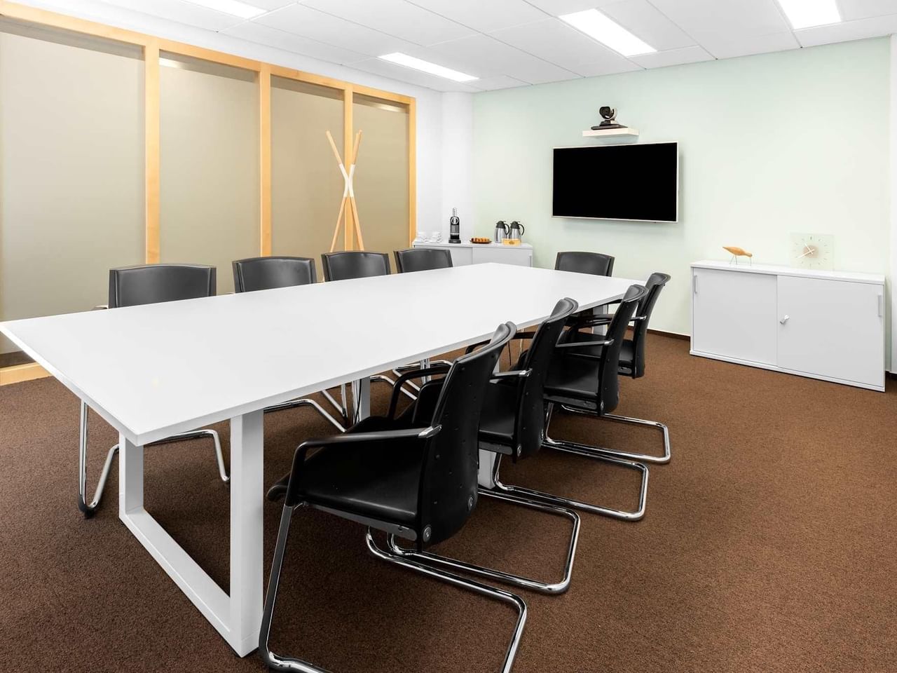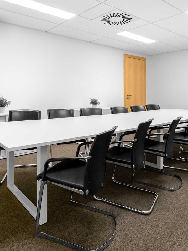Celebre reuniones productivas en oficinas totalmente amuebladas, con ventanas panorámicas con vistas a Praga.