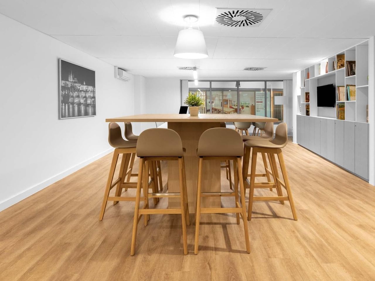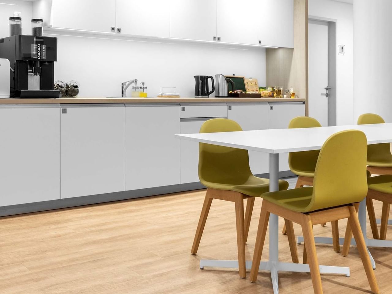 Tómese un descanso con sus colegas en la cafetería del edificio.