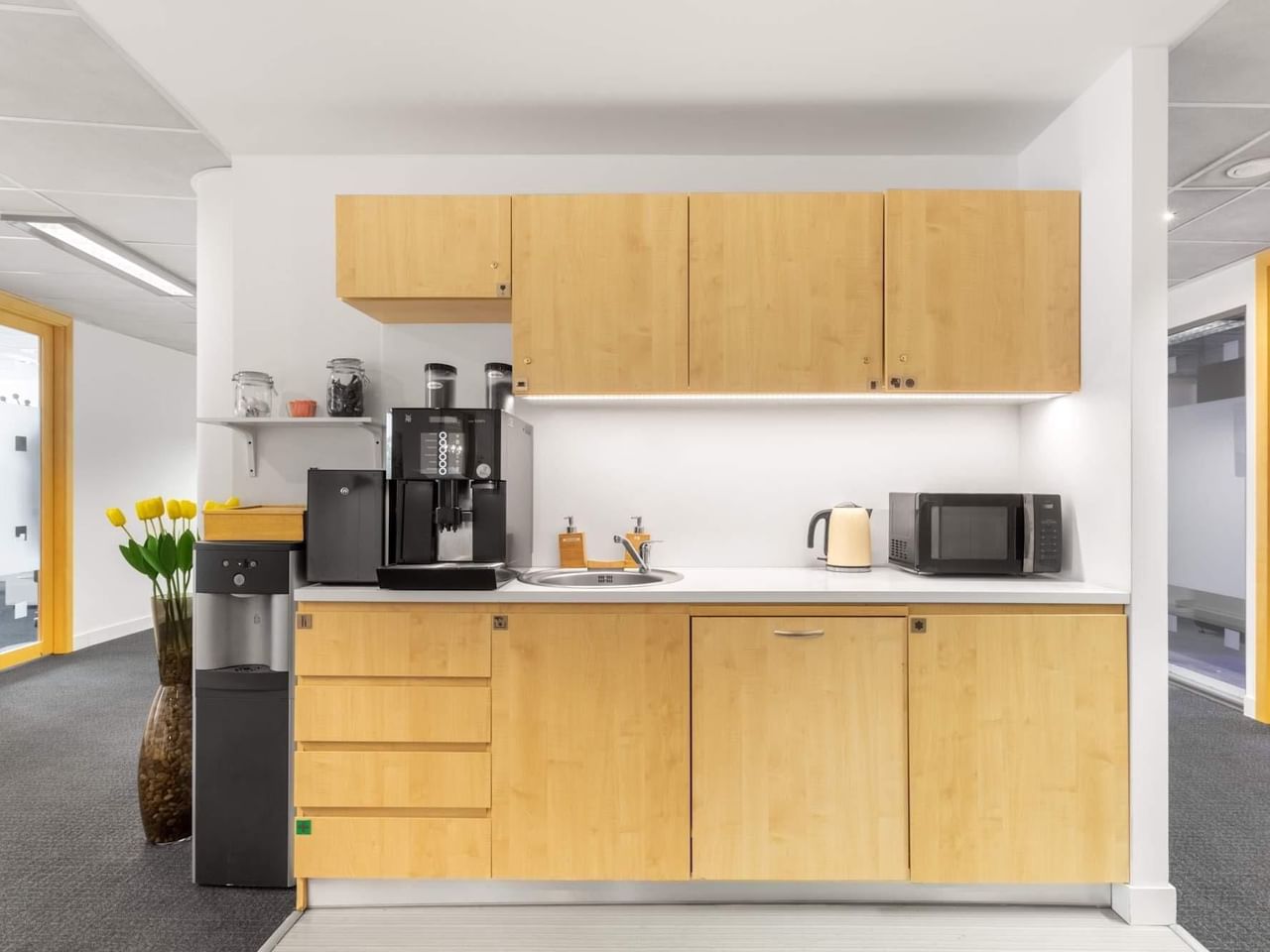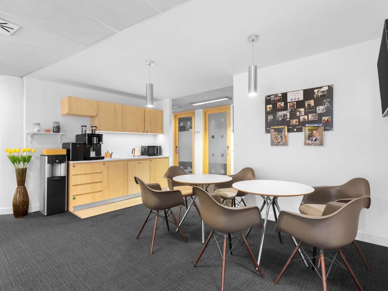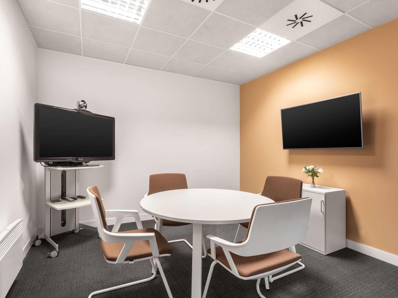 Gracias a los grandes ventanales de la oficina, podrás arrojar nueva luz sobre un proyecto o ponerte al día con un cliente utilizando las instalaciones de videoconferencia.