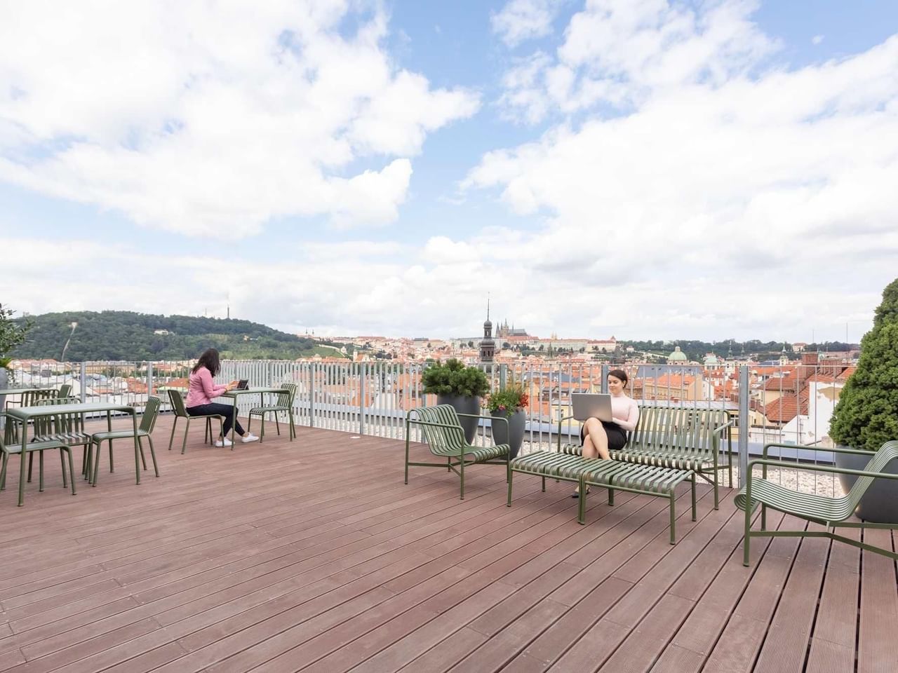 Situado en el límite entre la Ciudad Nueva y la Ciudad Vieja de Praga, en la esquina de una de las calles más emblemáticas de la ciudad (traducida como Calle Nacional), se encuentra en el corazón de un barrio animado y en la mejor posición para dejar su huella en el mundo de los negocios.