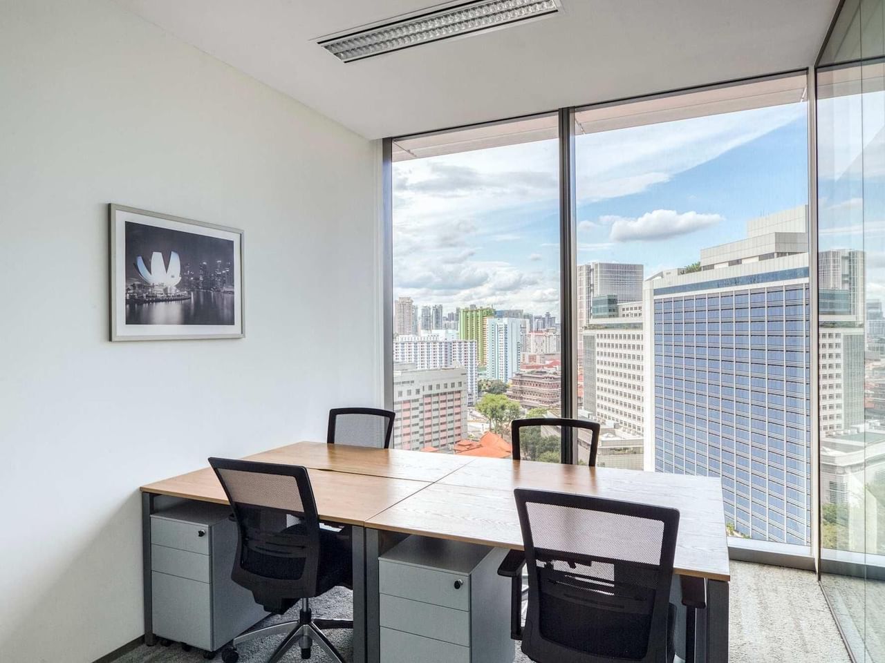 Apunte alto con un espacio de oficinas en Guoco Tower, uno de los edificios más altos de Singapur.