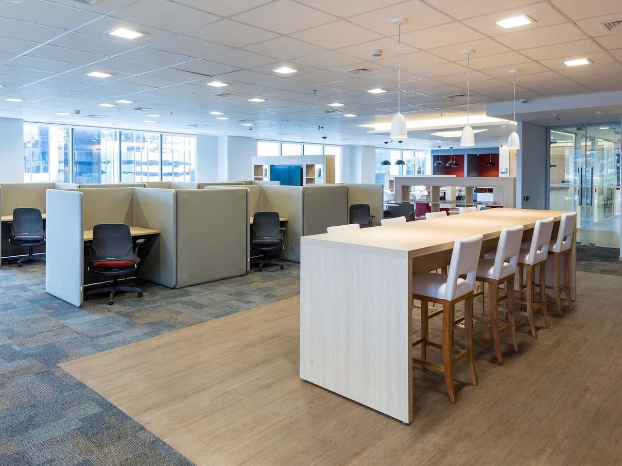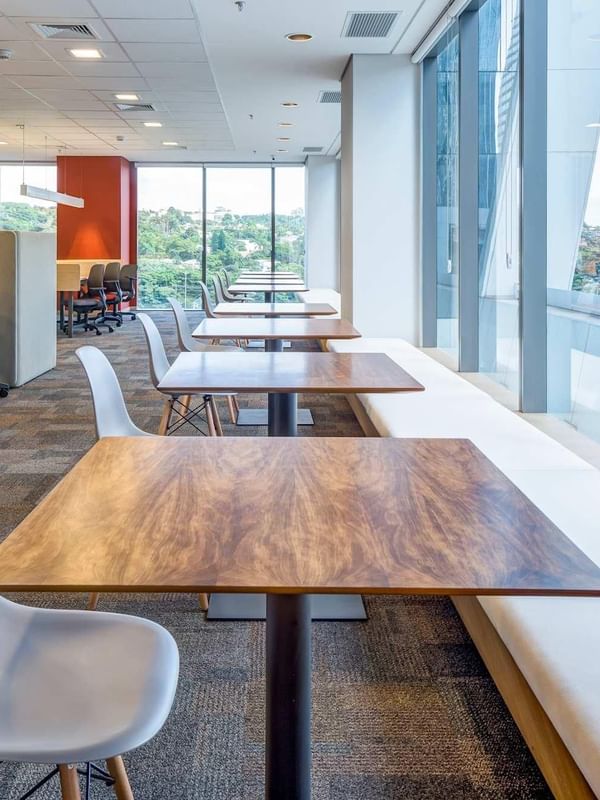 Praat bij met klanten in de koffiebar ter plaatse en geniet van het uitzicht op de stad vanaf de vijfde verdieping van dit opvallende Wtorre JK-gebouw met AAA-rating.