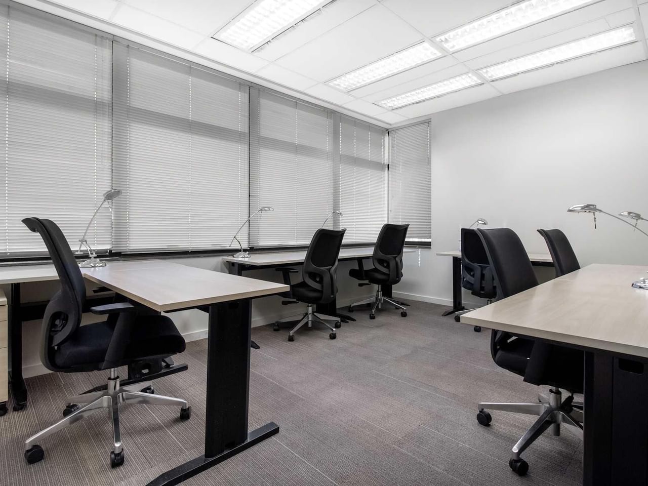 Werk comfortabel in een moderne omgeving, met ramen van vloer tot plafond die voor veel natuurlijk licht zorgen.