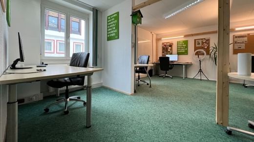 Omdat thuiswerken vaak geen echte en permanente oplossing is, hebben we voor jou de ideale oplossing gecreëerd in Kaufbeuren: 7 individuele kantoren voor 1-3 personen, 4 aparte bureaus en 3 ontspanningshoeken.