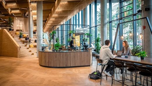Geniet van het indrukwekkende uitzicht over het station en de rivier de Spree vanuit de met licht overgoten kantoren.