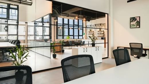 Er valt veel daglicht binnen in de kantoren van je team door de raampartijen en hoge, ruime plafonds. Jij en je team kunnen een hele verdieping of individuele teamkantoren bezetten.