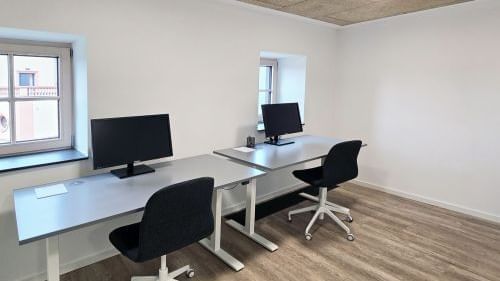 Je hebt de beschikking over zes moderne werkplekken en een vergaderruimte. Evenals een vergaderruimte.