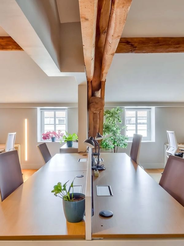 Ons all-inclusive aanbod omvat kantoren uitgerust met kwaliteitsmeubilair, een breedband internetverbinding, een vergaderzaal met audiovisuele apparatuur, een kitchenette, omkeerbare airconditioning voor optimaal comfort in alle seizoenen, een regelmatige schoonmaakdienst en technische bijstand indien nodig. U hoeft zich geen zorgen te maken over de logistiek en kunt zich volledig concentreren op uw werk!