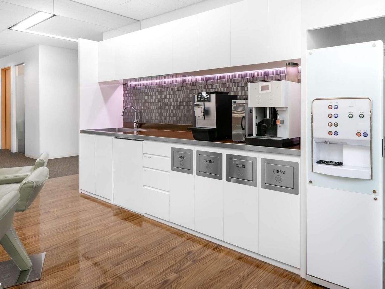 Ontdek de dagelijkse inspiratie en motivatie van het prachtige uitzicht op de stad door de grote ramen in deze ruime en stijlvolle werkruimte.
