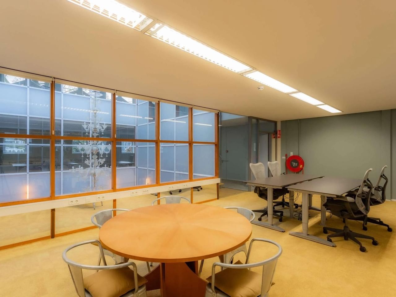 Grote ramen overspoelen de ruimtes met natuurlijk licht, terwijl het strakke interieur en de zorgvuldig gekozen werkplekken zowel creativiteit als productiviteit stimuleren.