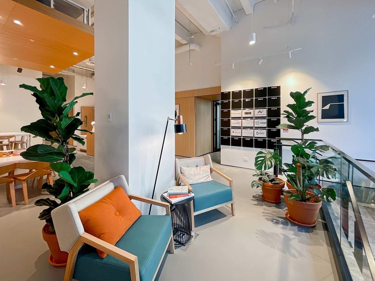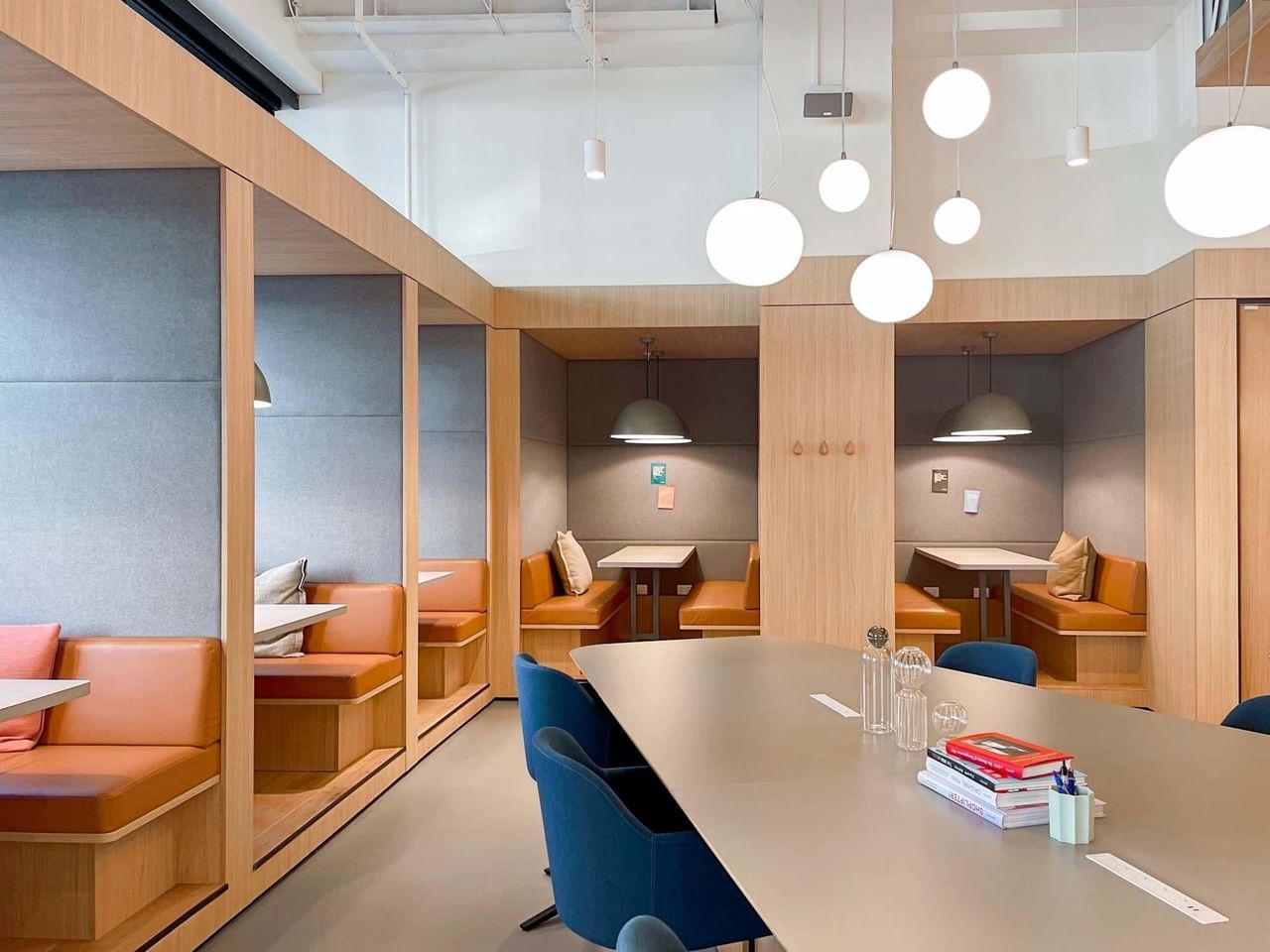 Werk moeiteloos samen met gelijkgestemde professionals in de open werkruimtes en breid je netwerk uit in het Ground Floor Café.