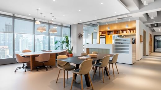De ruimte is ontworpen met een simplistisch design dat het natuurlijke licht en de eigenzinnige kunstwerken viert, waar elke hoek gevuld is met kleine details om de productiviteit en het gemeenschapsgevoel te bevorderen.