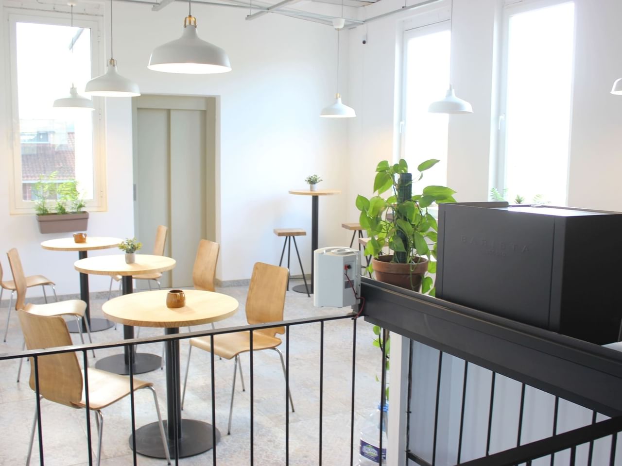 Het biedt een grote open ruimte met grote tafels, verschillende coworking gebieden zoals :