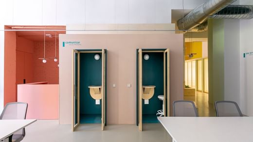 Stimuleer uw team met moderne witte interieurs en ramen van vloer tot plafond die natuurlijk licht binnenlaten en een adembenemend uitzicht bieden.