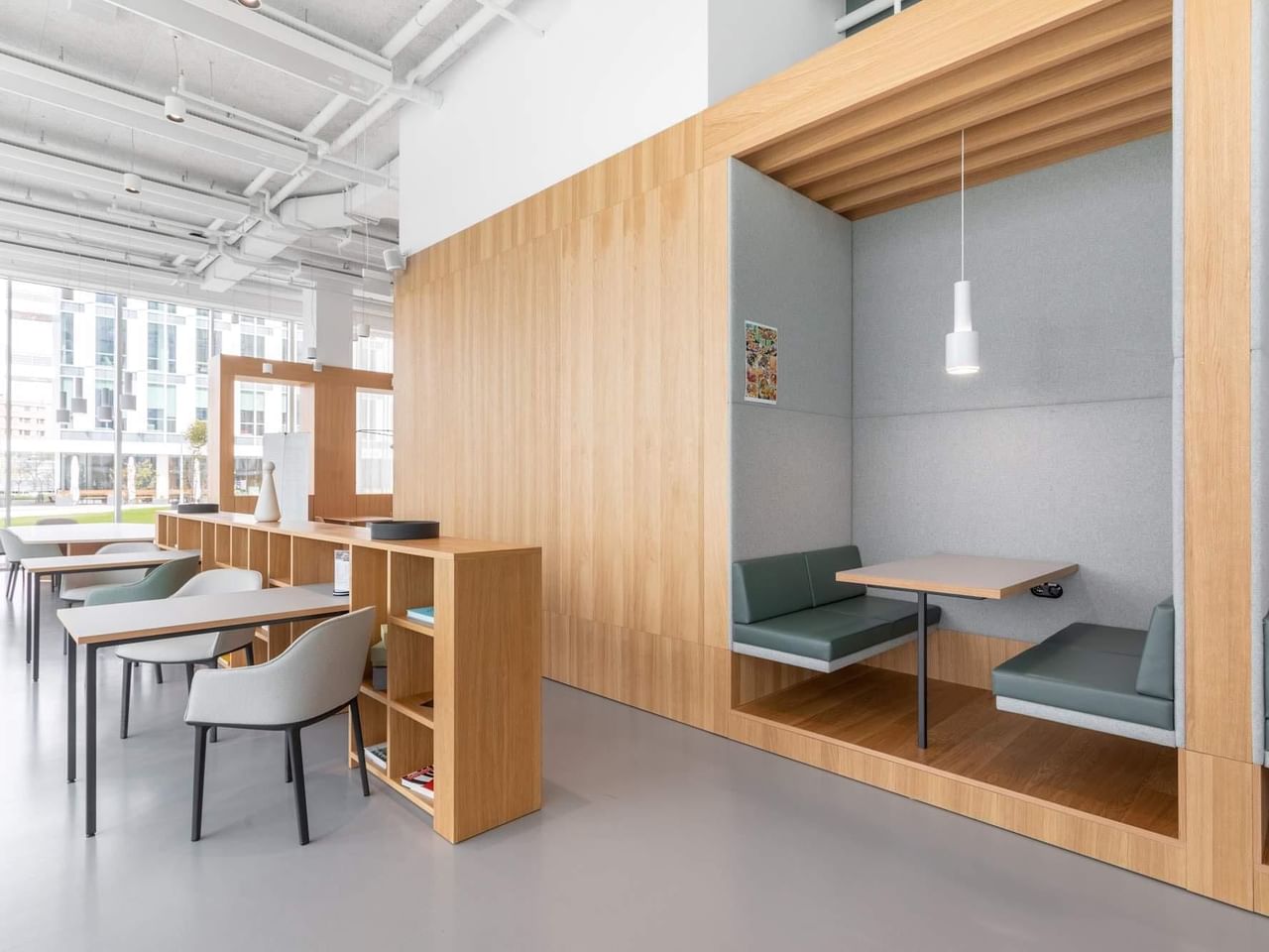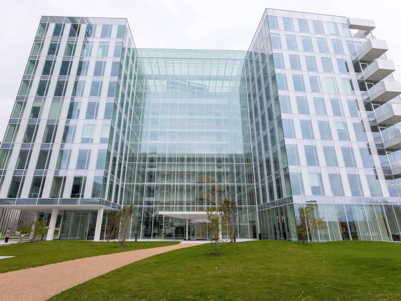 De opvallende glazen gevel filtert natuurlijk zonlicht in elk kantoor, gedeelde werkruimte en conferentieruimte, waardoor een inspirerende ruimte ontstaat.