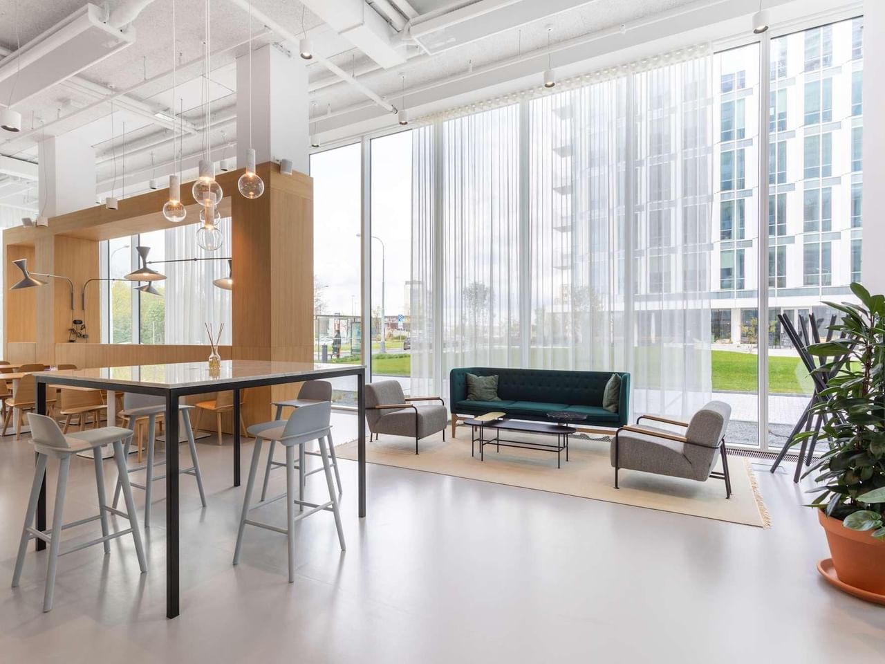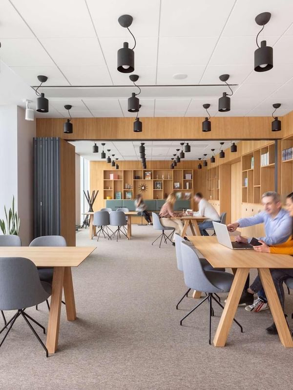 Handige voorzieningen zoals Wi-Fi van zakelijke kwaliteit en vergaderzalen die online geboekt kunnen worden, zorgen ervoor dat je altijd op je productiefst bent, en een uitstapje naar de gedeelde dakterrassen geeft energie aan de werkdag.