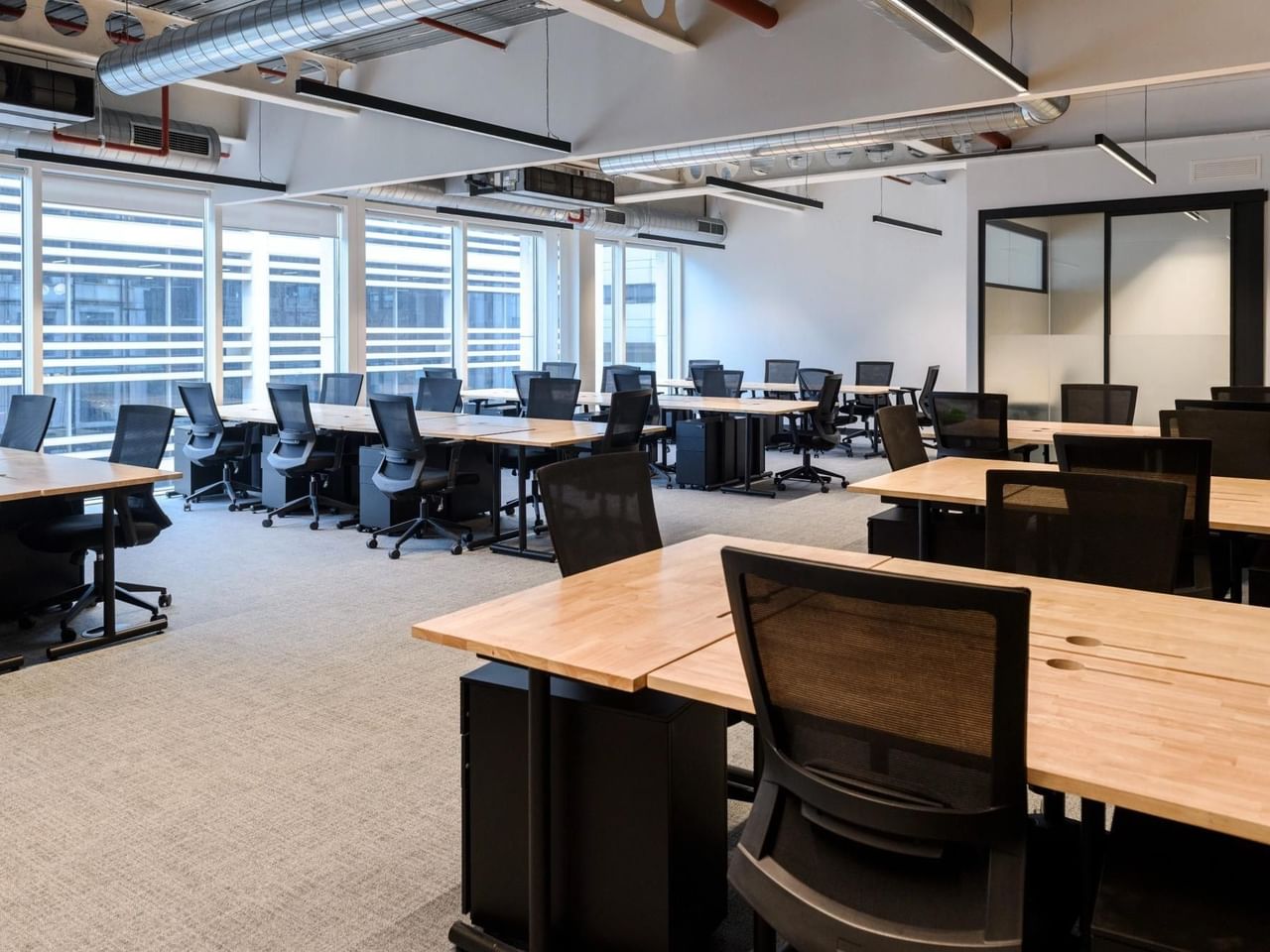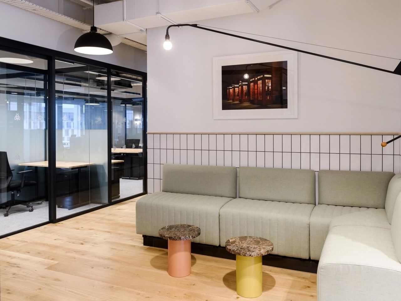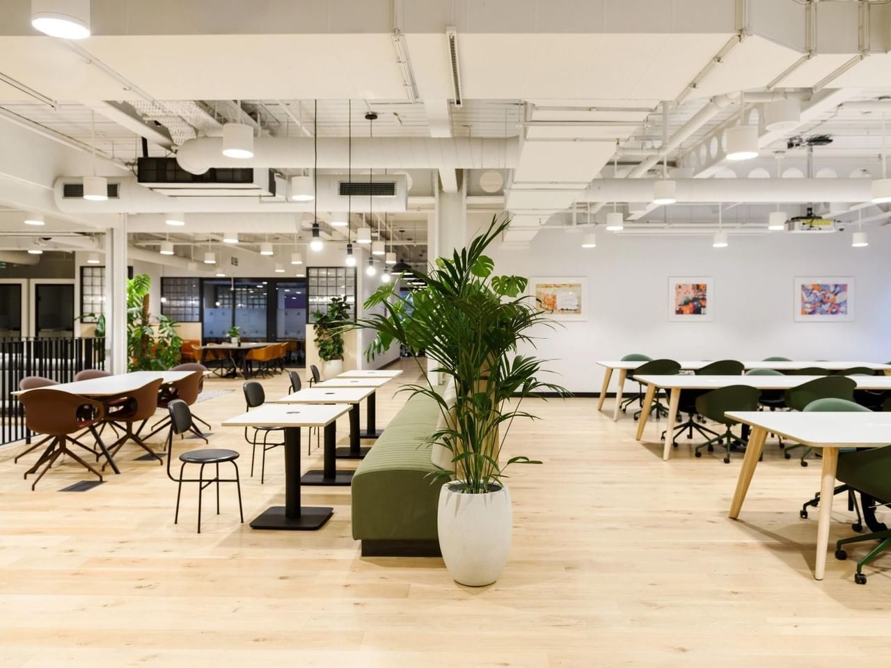 Industrious op 131 Finsbury Pavement, ideaal gelegen nabij Liverpool Street station en de open groene ruimte op Finsbury Square, biedt opties voor coworking en privékantoren voor kleine tot grote teams in het hart van Londen.