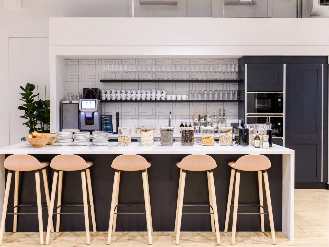 Naast toegang tot wifi, de mogelijkheid om vergaderzalen te reserveren en toegang tot gemeenschappelijke ruimtes, heeft of biedt Industrious 131 Finsbury Pavement: