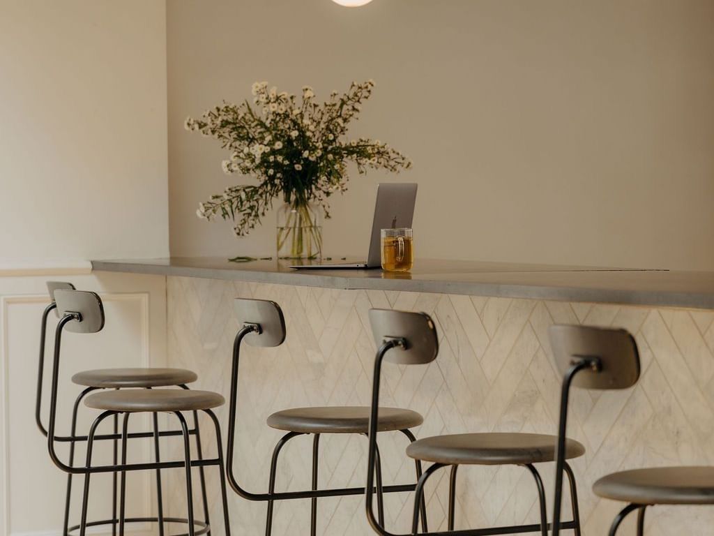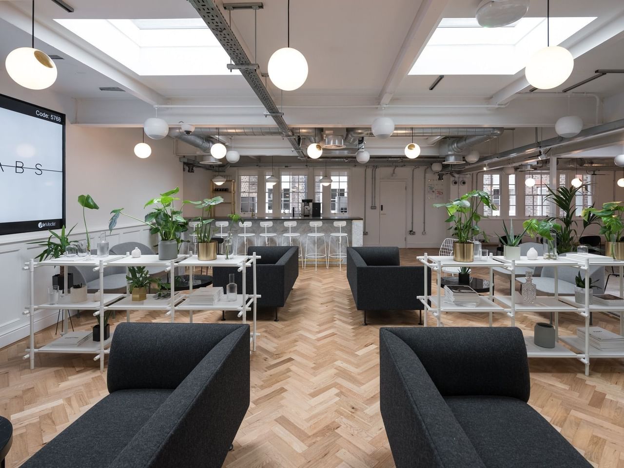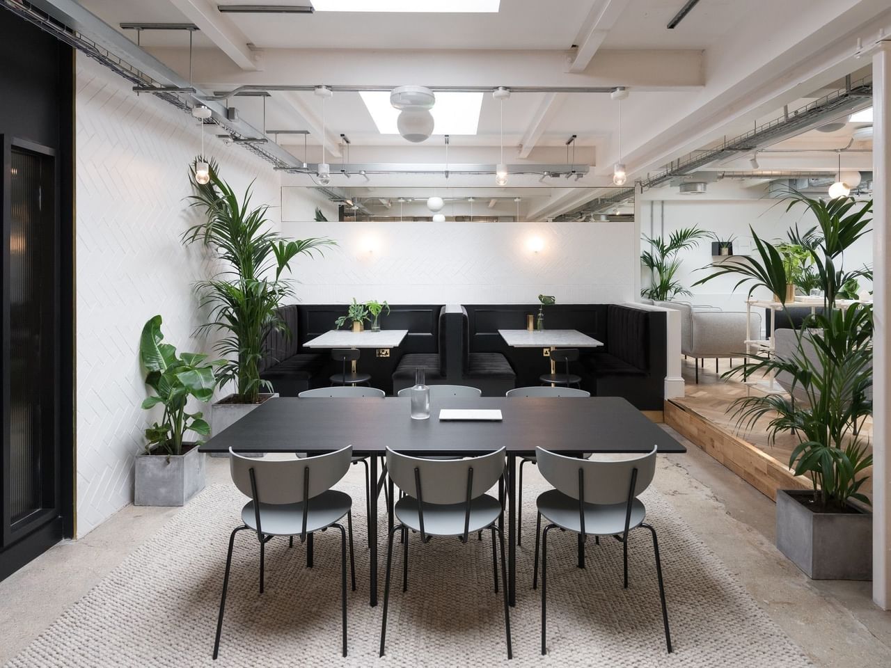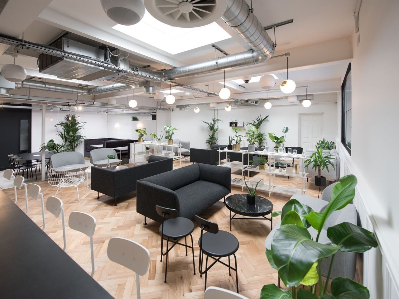 Op de begane grond bevindt zich een ontspannende en stijlvolle gemeenschappelijke loungeruimte met een goed ingerichte keuken, cabines en privé-telefooncellen, die via een binnenplaats ook toegang biedt tot LABS Hogarth House en het dagcafé en de bar, voor als u even wilt pauzeren of heerlijk wilt eten.