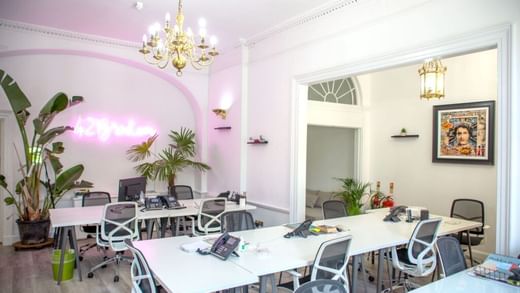Dit historische boetiekpand heeft een overvloed aan daglicht en originele stijlkenmerken en biedt tien unieke en privé kantoorsuites variërend in grootte, een gemeenschappelijke tuin en een privé dakterras voor het kantoor op de bovenste verdieping.