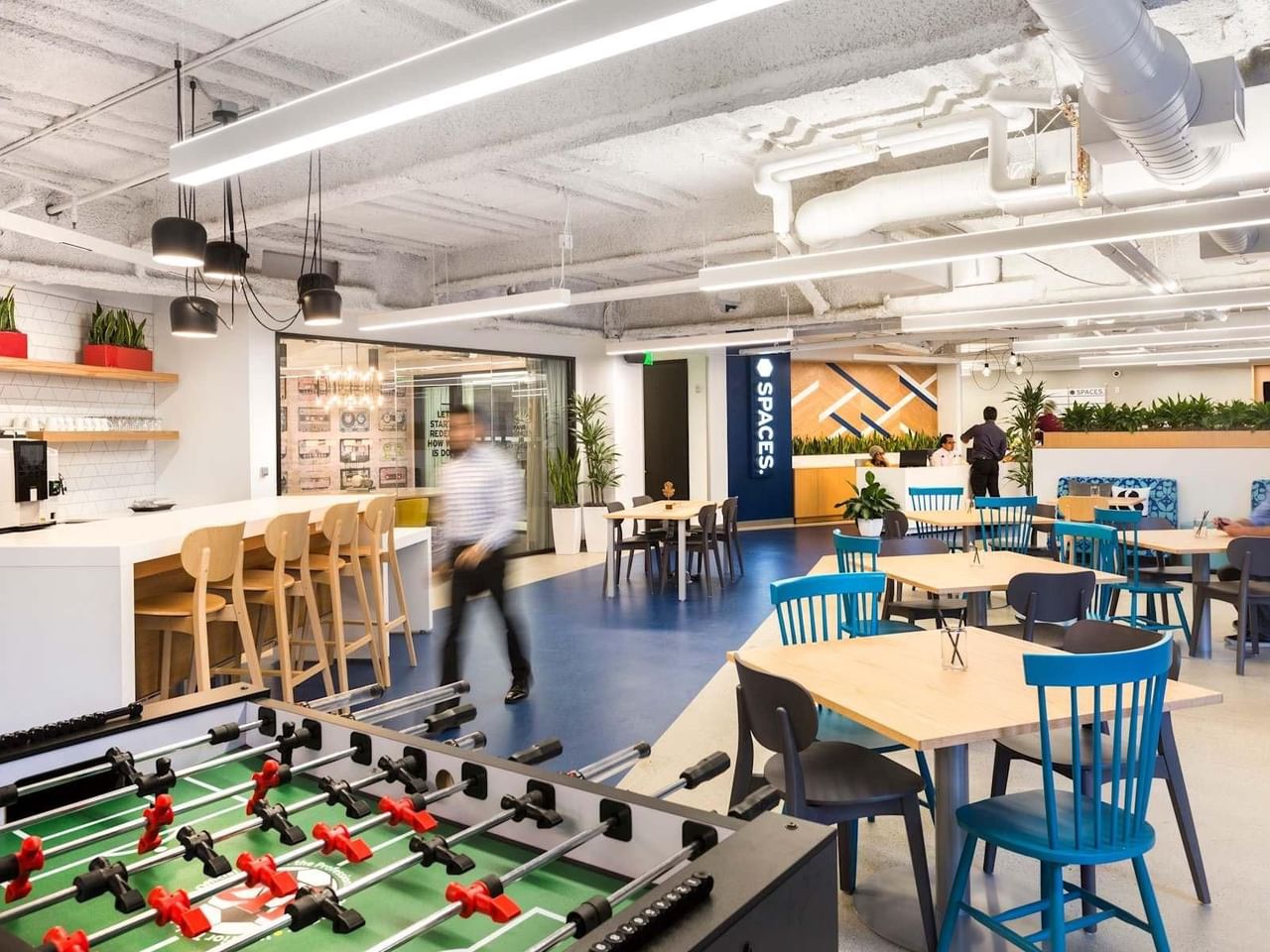 Naast toegang tot wifi, de mogelijkheid om vergaderzalen te reserveren en toegang tot gemeenschappelijke ruimtes, heeft of biedt Spaces Levi's Plaza:
