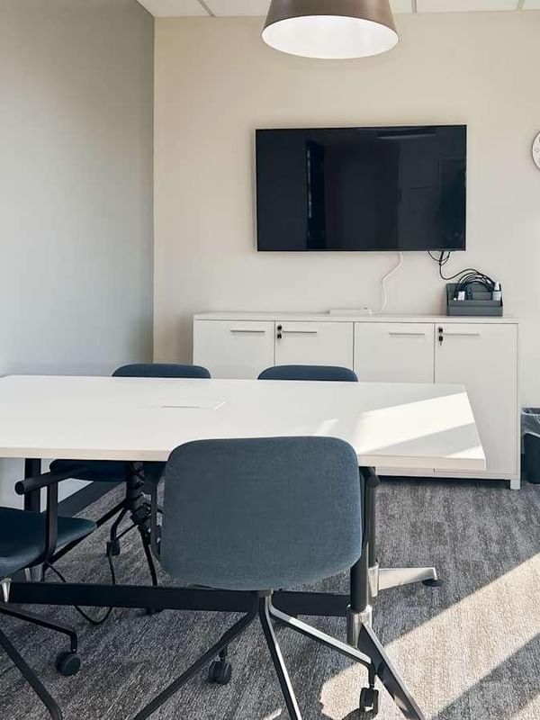 Verzamel collega's voor groepssessies of organiseer je volgende pitch in professionele vergaderruimtes die volledig zijn uitgerust met flatscreentelevisies, presentatieapparatuur en videoconferentietechnologie.