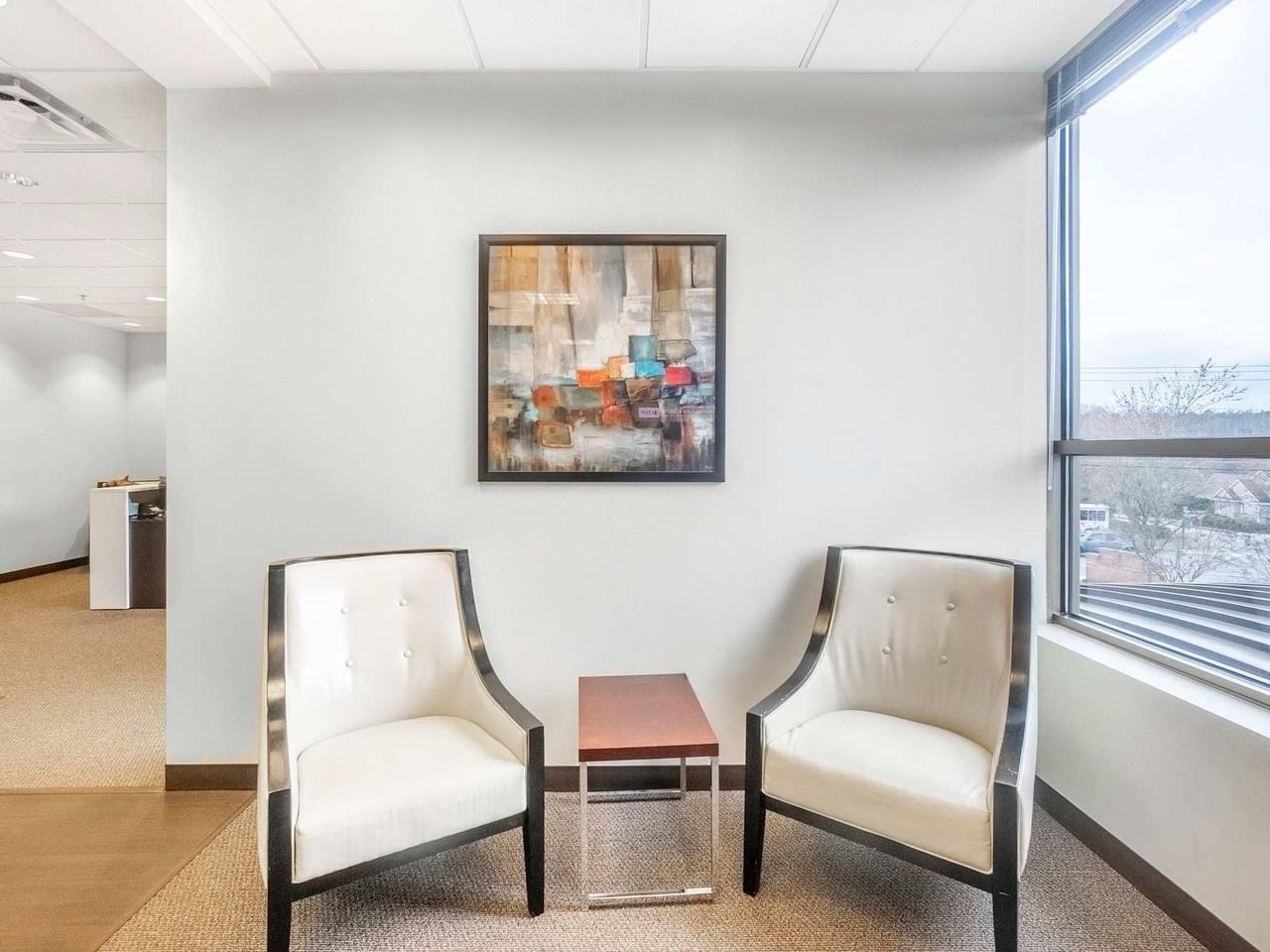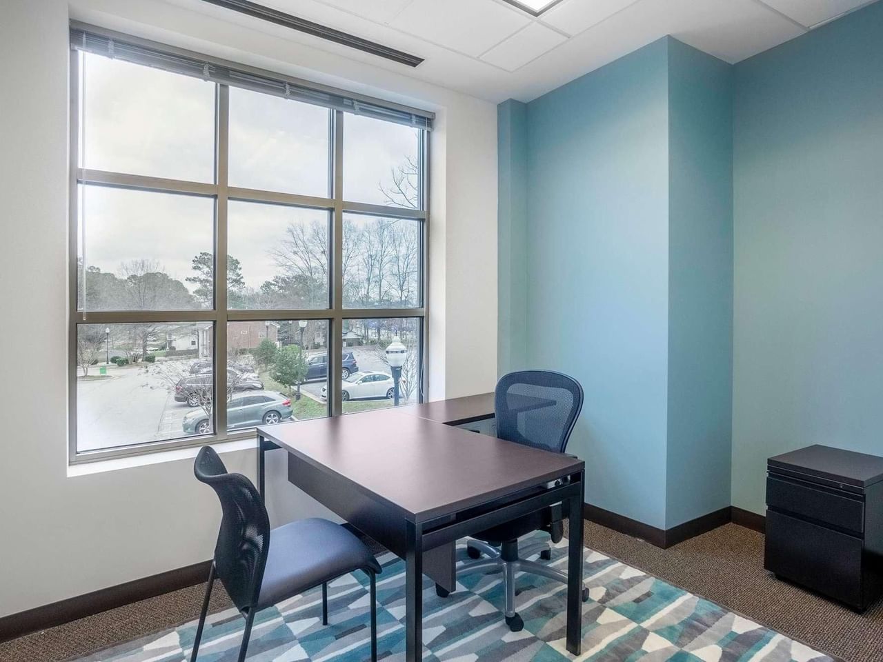 Grote ramen laten veel natuurlijk licht binnen terwijl u werkt, en de koffiebar op het terrein zorgt ervoor dat u de hele dag kunt doorwerken.