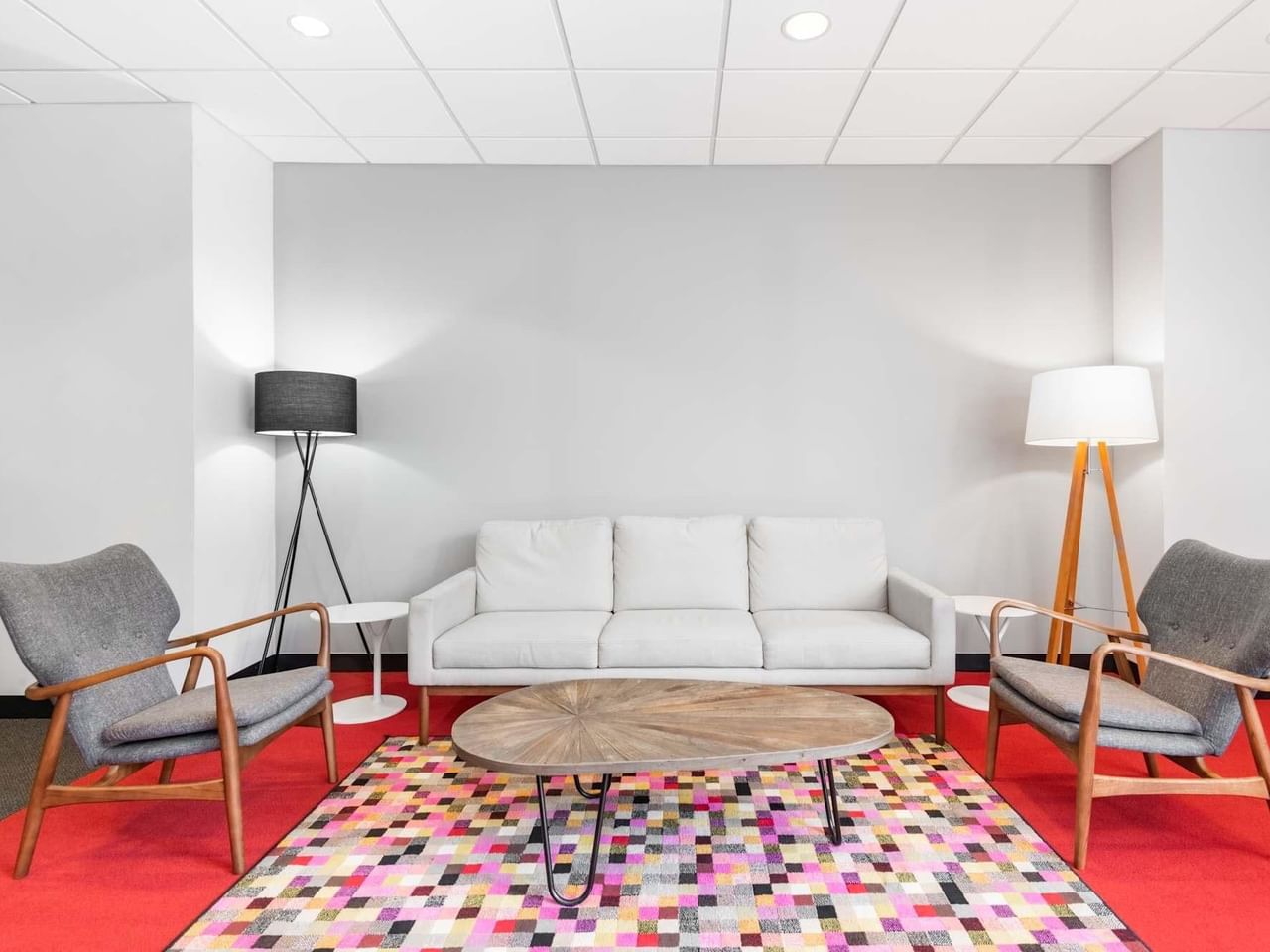Dit felgekleurde gebouw biedt een ontspannen omgeving met een business lounge, buitenzitjes en parkeergelegenheid voor auto's en fietsen.
