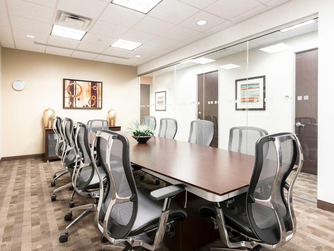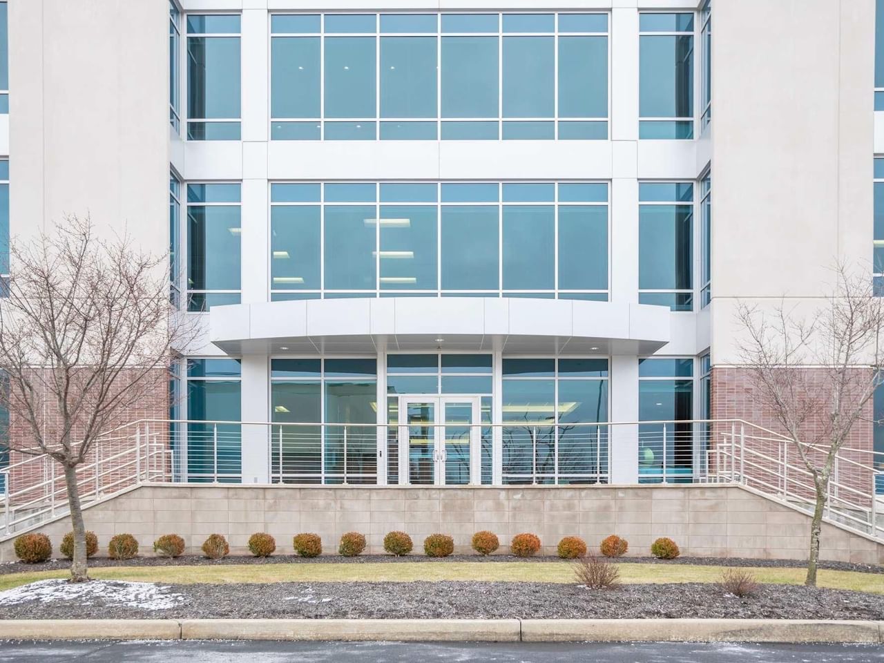 Dit moderne gebouw met glazen gevel biedt voorzieningen zoals een drop-in business lounge en faciliteiten voor gehandicapten, waardoor je een professionele en flexibele werkomgeving hebt.