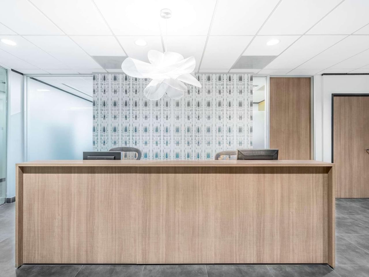 Een prachtig atrium met waterfontein zorgt voor een indrukwekkend welkom, terwijl grote ramen natuurlijk licht toelaten om uw werk te verlichten in de stijlvolle kantoorruimte.