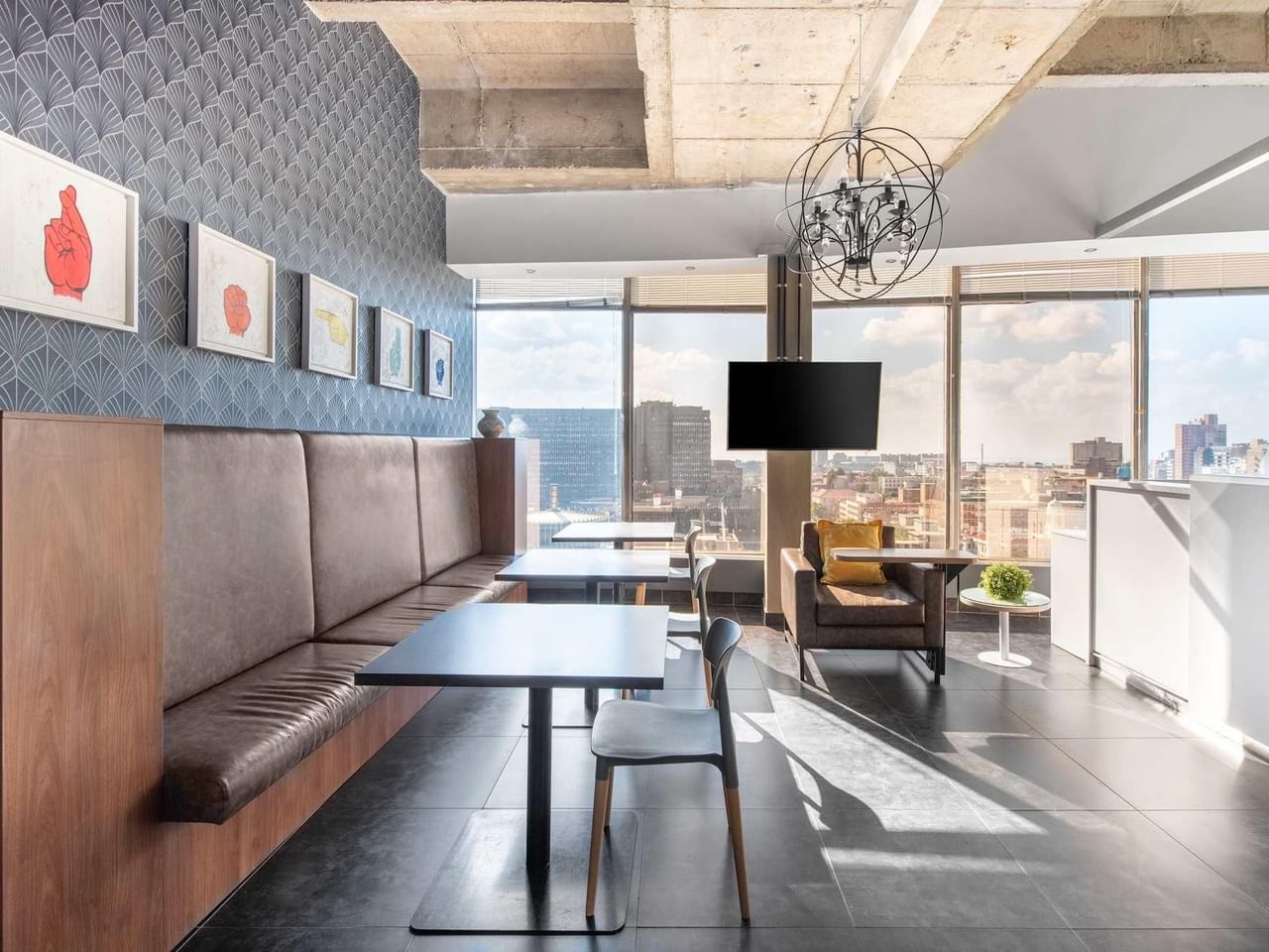 Laat je inspireren door het prachtige uitzicht over Johannesburg vanuit ramen van vloer tot plafond.
