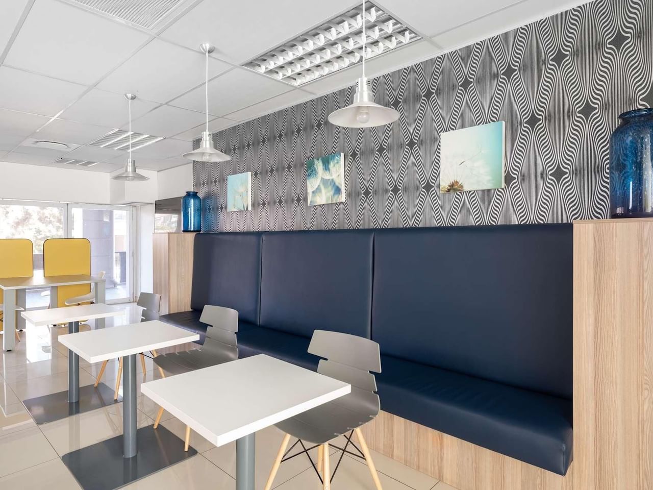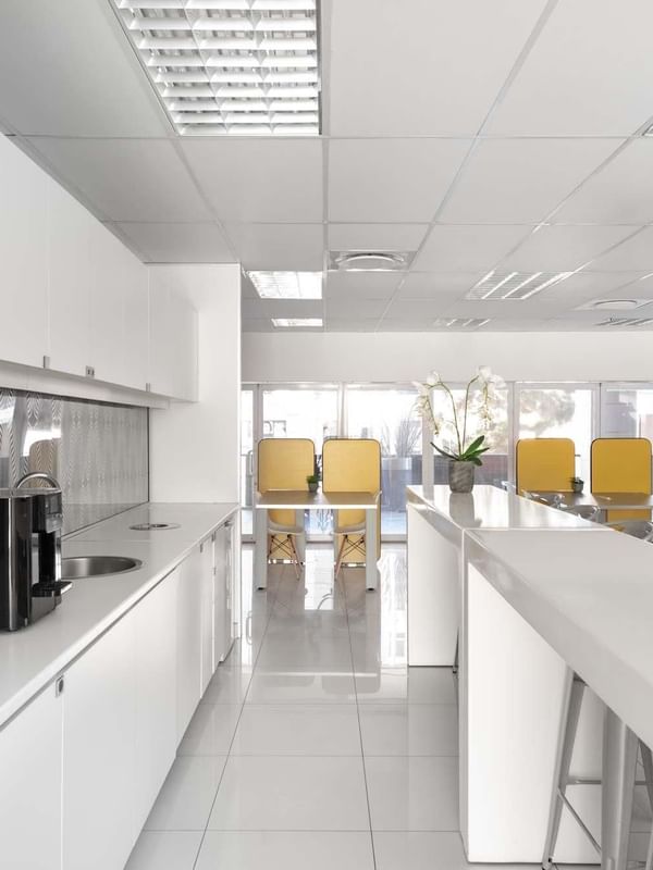 Breng tijd door met socializen in de open keuken en maak gebruik van de comfortabele gemeenschappelijke ruimtes om samen te werken met je team.