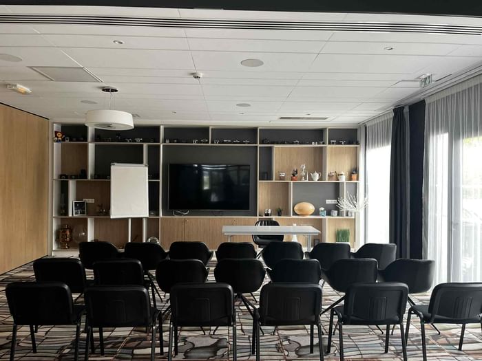 - Comfortabele tafels en stoelen die kunnen worden aangepast van gekke teambuildingsessies tot grondige HR-evaluatiesessies.